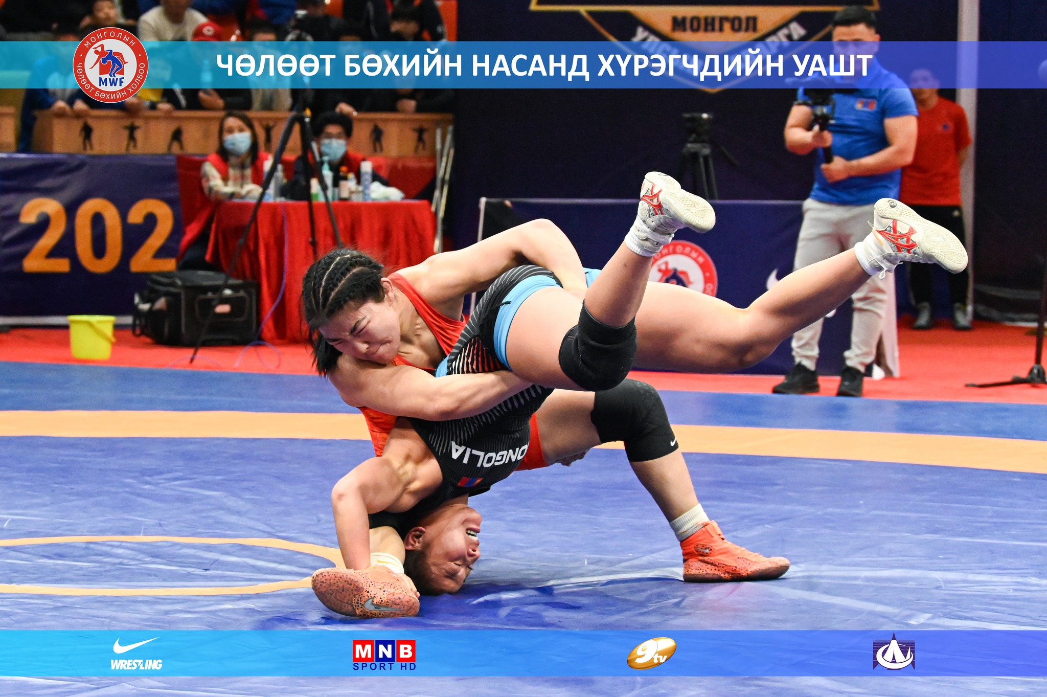 Эмэгтэйчүүдийн 53 кг-ын жинд "Алдар" спорт хорооны бөх, 23 хүртэлх насныхны ДАШТ-ий хүрэл, Азийн АШТ-ий мөнгө, хүрэл медальтай Ч.Отгонтуяа, "Дархан Хасу FOHOW" клубийн харьяат, Азийн АШТ-ий үзүүр бөх Ц.Намуунцэцэг нар аваргын төлөө барилдлаа. Эдгээр бөхчүүд хэсгийн шатнаа учраа таарахад Ч.Отгонтуяа 9:8 харьцаатайгаар ялсан юм.