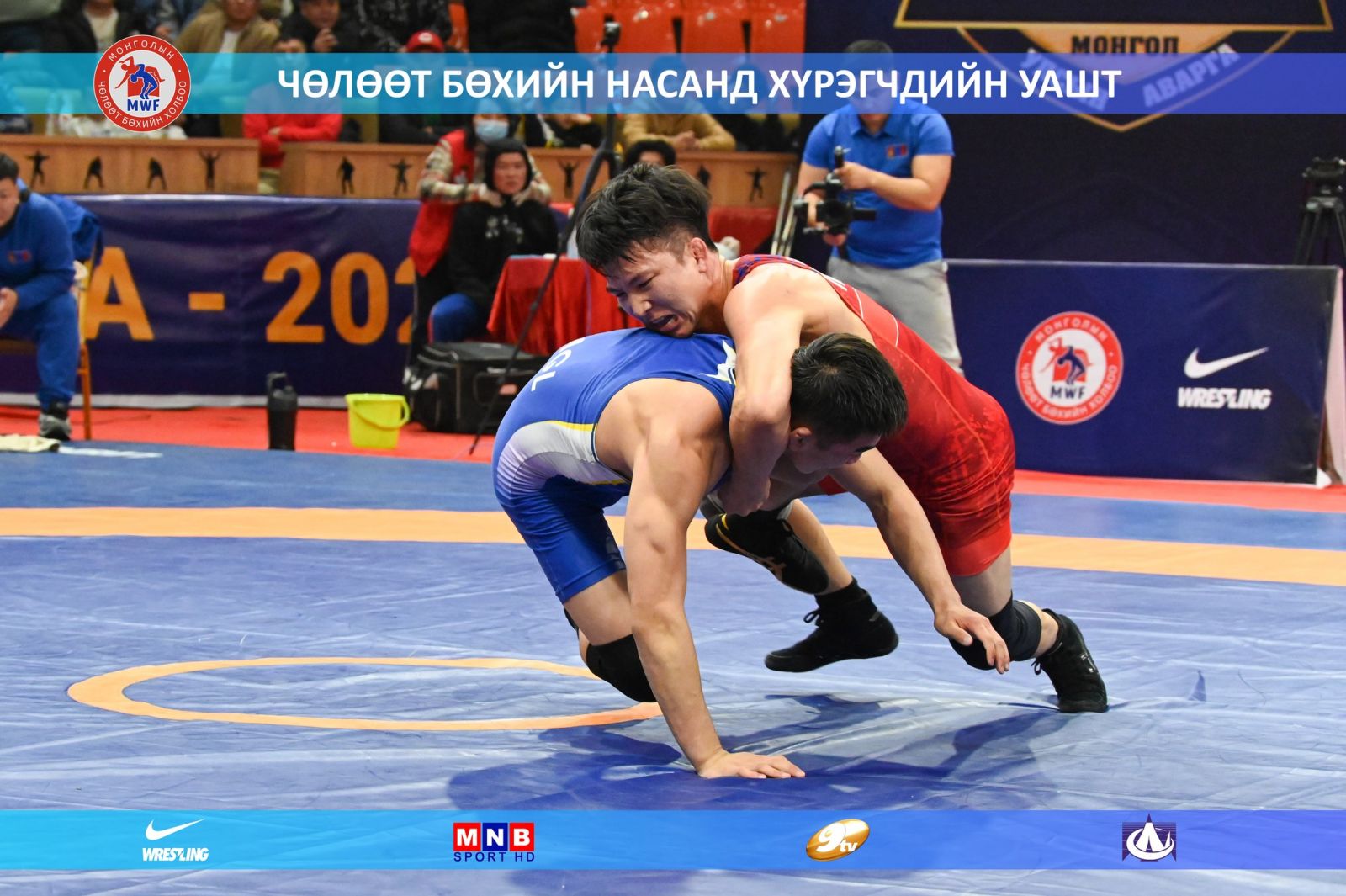 Гавьяат тамирчин Д.Оюунболд агсны тэртээ 1980 онд олимпын наадмаас хүрэл медаль авчирч байсан 57 кг-ын жинд “Төгс” дэвжээний бөх, 23 хүртэлх насныхны ДАШТ-ий хүрэл медальт Б.Мөнх-Эрдэнэ, Монголын чөлөөт бөхийн холбооны тамирчин, 23 хүртэлх насныхны Монгол Улсын аварга С.Жигүүр нар финалдлаа. Энэ барилдаанд цэвэр ялсан Б.Мөнх-Эрдэнэ хоёр дахь жилээ дараалан Насанд хүрэгчдийн УАШТ-д түрүүлэв.