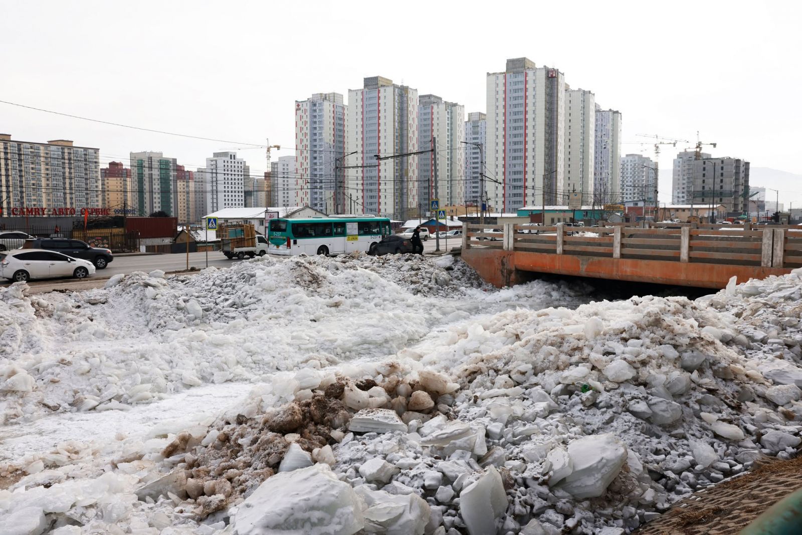 Тэрбээр “Ойрын өдрүүдэд харьцангуй дулаарсан учраас усны түвшин нэмэгдэж, урсгал нь хурдассан. Тиймээс халиа тошин ихээр үүссэн хэсэгт суваг татаж, мөсийг цэвэрлэж, зөөж, далан босгож байна. “Ногоон нуур” орчмын айлуудыг нүүлгэн шилжүүлснээр айл өрх халиа тошинд өртөх эрсдэл багассан ч энэхүү сувгийн доод хэсэгт орон сууцны хорооллууд байдаг учраас бид өдөр бүр халиа тошин халих болон хаврын шар усны үерээс сэргийлэх арга хэмжээг авч ажиллаж байна” гэв.