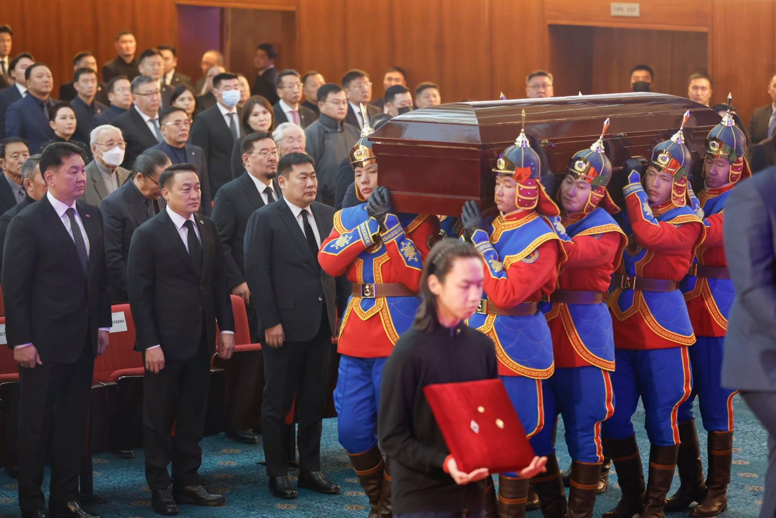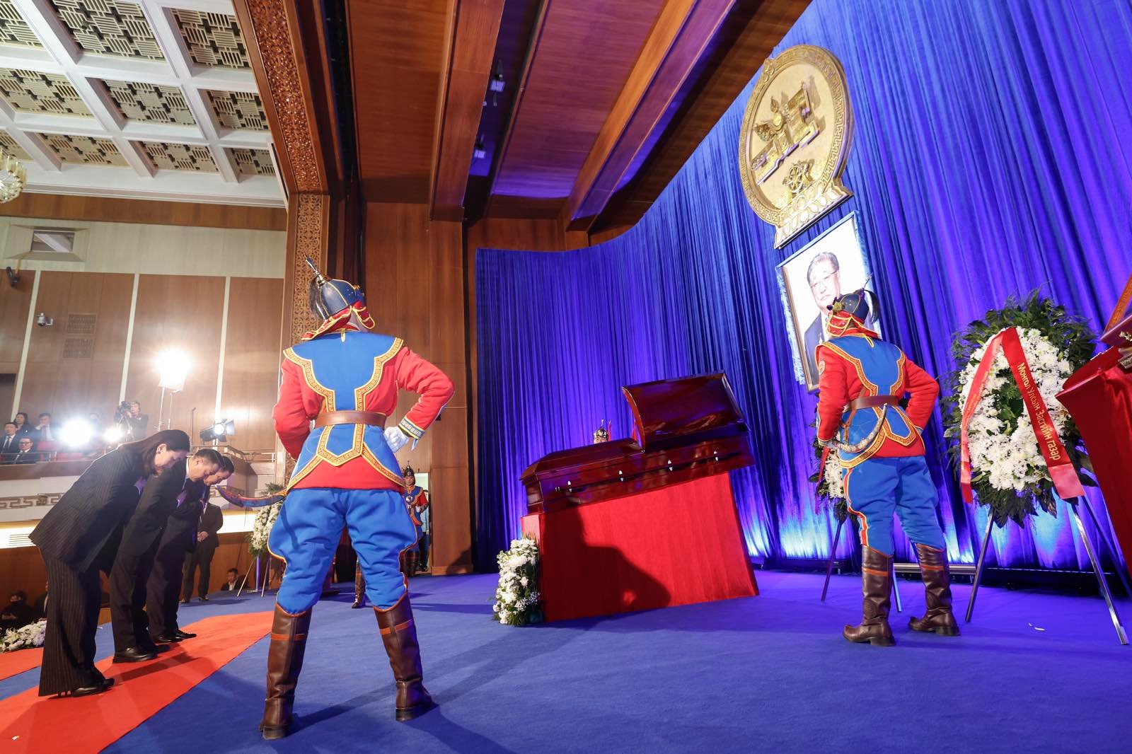 Зарлигийн дагуу 2025 оны 01 дүгээр сарын 24-ний өдрийн 07.00 цагаас 2025 оны 01 дүгээр сарын 25-ны өдрийн 00.00 цаг хүртэлх хугацаанд орон даяар Төрийн далбааг 45 хэмээр бөхийлгөх буюу Төрийн далбааны ишний гуравны хоёрт хүртэл буулгасан билээ.