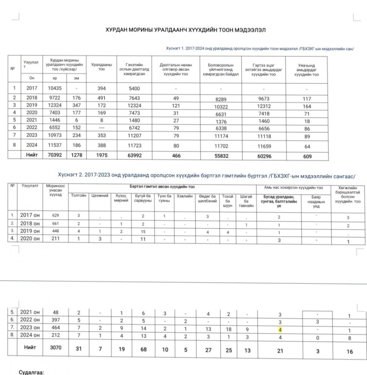 2017-2024 онд нийт 3070 хүүхэд мориноос унасан.