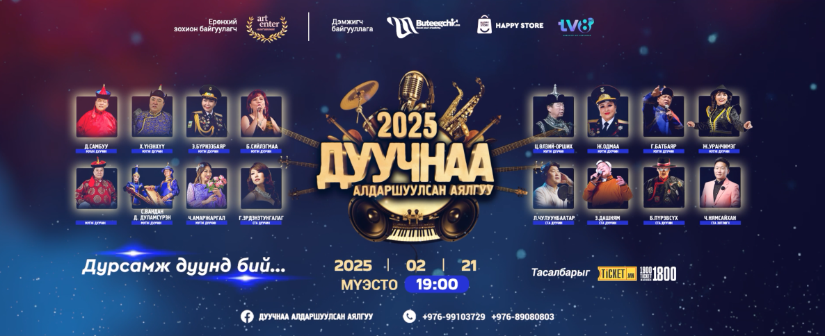 Та бидний зүрхэнд хүрсэн аялгууг сэтгэлд хоногшуулсан дуучид хамтран "Дуучнаа алдаршуулсан аялгуу 2025" нэгдсэн тоглолтоо толилуулах гэж байна.