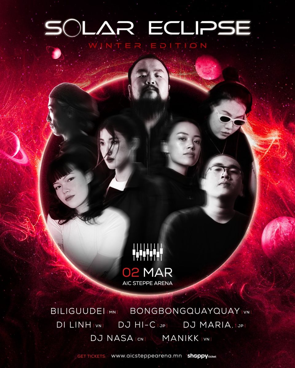 Steppe arena, Steppe amusement-н хамтран SOLAR ECLIPSE хэмээх Азийн шилдэг DJ нарын шоу тоглолт зохион байгуулж, электро хөгжмийн гайхамшгийг мэдрүүлэх гэж байна.
