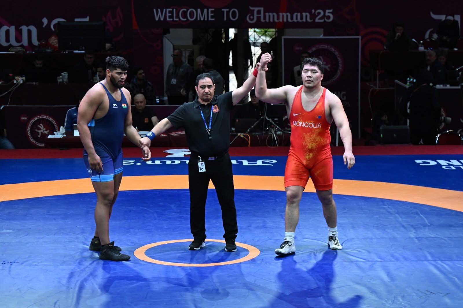Тэрбээр хагас шигшээд Энэтхэгийн бөх Динеш Динешийг 5:1-ээр буулгаж авсан юм.
