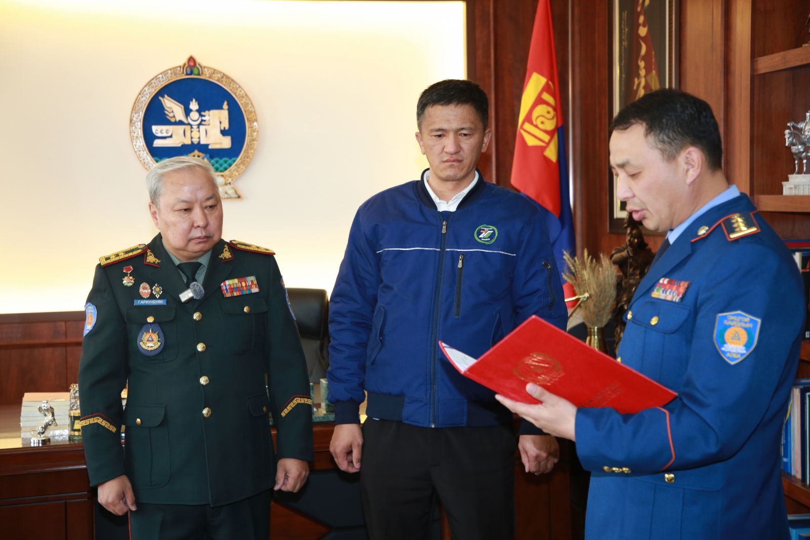 Хошууч генерал Г.Ариунбуян “Иргэний үүргээ нэр төртэй биелүүлж, бусдад зөв үлгэр дууриалал болж, эрдэнэт хүний амь насыг авран хамгаалсан их үйлсэд тань хувиасаа болон Онцгой байдлын байгууллагын нийт бие бүрэлдэхүүний өмнөөс талархаж байна. Таны ажил, амьдралд хамгийн сайн сайхан бүхнийг хүсэн ерөөе” гэлээ.