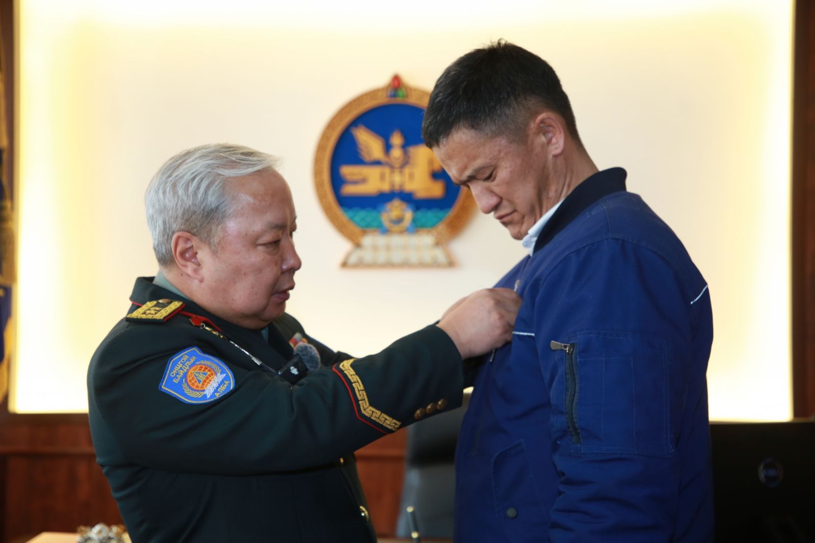 Тиймээс ОБЕГ-ын дарга, хошууч генерал Г.Ариунбуян өнөөдөр Д.Азжаргалыг хүлээн авч уулзан, “Онцгой байдлын албаны Онцгой үйлстэн” тэмдгээр шагналаа.