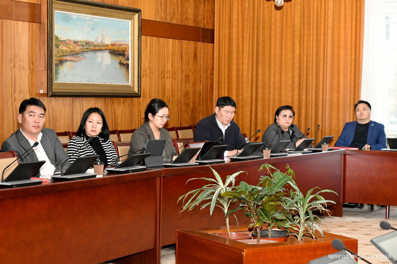 Тус ажлын хэсгийг Улсын Их Хурлын гишүүн Н.Наранбаатар ахалж байна. Ажлын хэсгийн хуралдаанд Б.Мөнхсоёл, Ж.Золжаргал, Д.Батлут, П.Мөнхтулга, Л.Мөнхбаясгалан, Ц.Мөнхбат, Г.Дамдинням, Г.Ганбаатар, М.Бадамсүрэн, С.Замира, Ж.Баясгалан, Б.Уянга нар оролцож боловсруулж буй хуулийн хүрээнд санал солилцлоо.