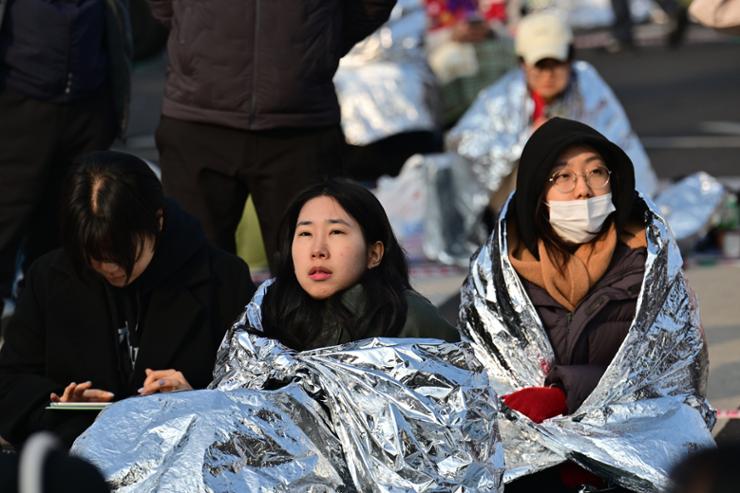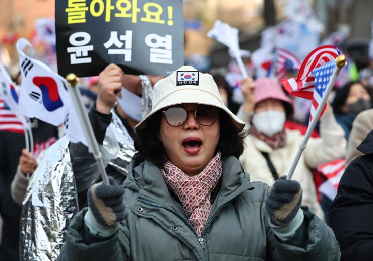 Үүний зэрэгцээ Ангук цамхагийн эсрэг талд Юн Сог Ёлийг дэмжигчид цуглажээ. Эдгээр хүмүүс дунд байсан 33 настай Ким Кён Су "Шүүхээс түүний импичментийг хэрэгсэхгүй болгоно гэдэгт би итгэж байна. Гэхдээ бүрэн дүүрэн батлагдаагүй тул санаа минь зовсон хэвээр байна. Ерөнхийлөгч дайны байдал зарласан нь сөрөг хүчний намын "хууль тогтоох дарангуйлал"-аас үүдэлтэй гэж үзэж байгаа" хэмээсэн байна.