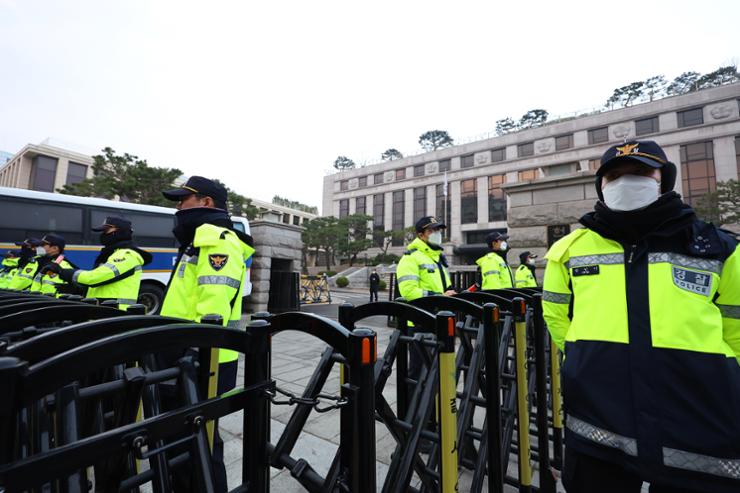 Цагдаа нар Сөүл хотын төв даяар хамгаалалтаа чангаруулж, мөргөлдөөн гарахаас урьдчилан сэргийлэх үүднээс цагдаагийн автобуснууд байршуулж, хот даяар цагдаагийн хамгаалалт гаргажээ. Сөүл хотын Ханнамду дахь Ерөнхийлөгчийн ордны ойролцоо Юн Сог Ёлийг цуглараад байгаа бөгөөд тэд шүүхийн шийдвэр гарсны дараа тэд Ерөнхийлөгчийн тамгын газар руу жагсахаар төлөвлөөд байгаа аж.