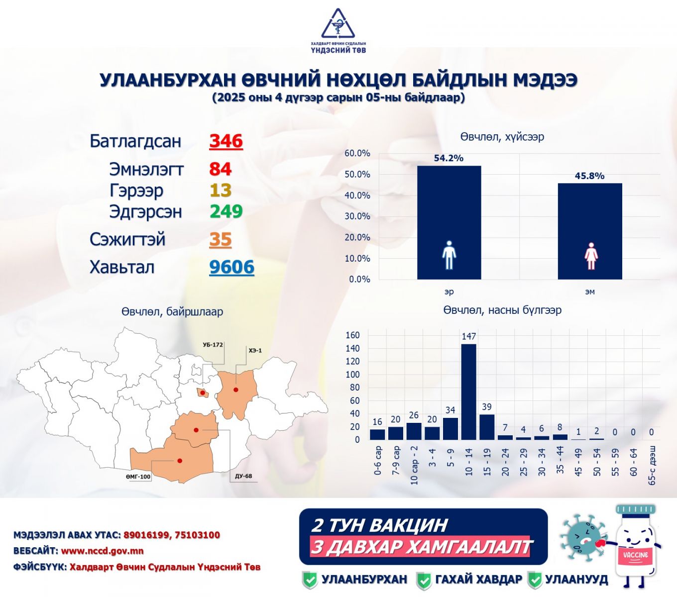 Халдварт өвчин судлалын үндэсний төвөөс Улаанбурхан өвчний нөхцөл байдлын тухай мэдээлэл өглөө.