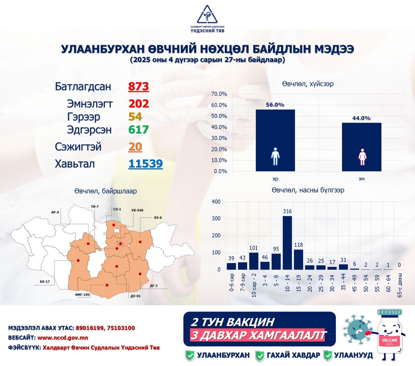Улаанбурхан өвчний батлагдсан тохиолдол 873 хүрчээ