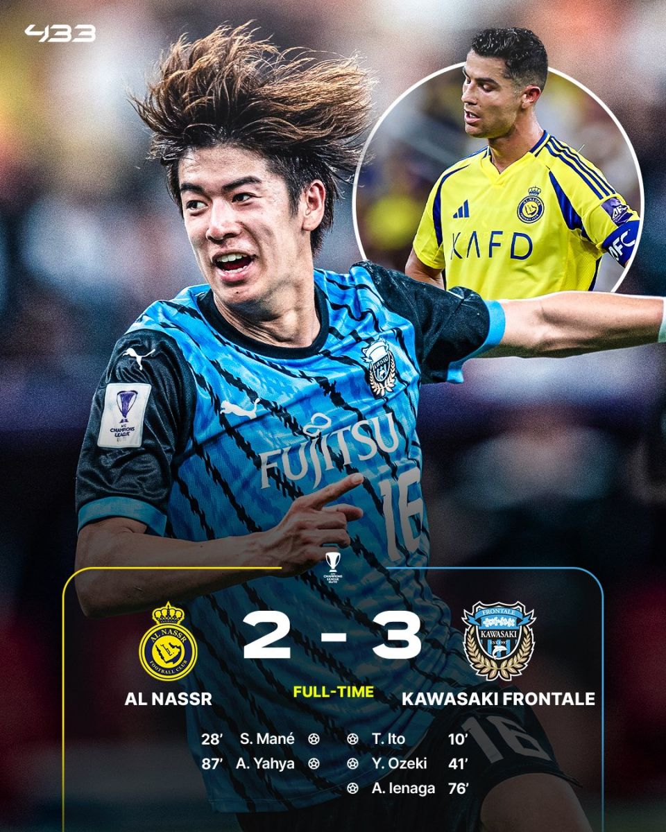 40 насны босго давсан португал довтлогч Криштиано Роналдогийн тоглож буй Саудын Арабын “Аль Наср” клуб шөвгийн дөрөвт Японы “Кавасаки Фронтэйл”-д 2:3-аар хожигдож, финалд шалгарах цаашлаад аварга болох боломжоо алдлаа.