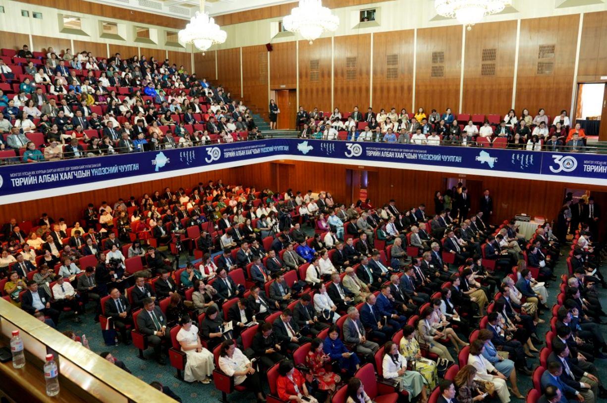 Төрийн албан хаагчдын үндэсний чуулган өнөөдөр Төрийн ордонд болж байна. Тус чуулганд Монгол Улсын Ерөнхий сайд Г.Занданшатар оролцож, үг хэллээ. Тэрбээр, төрт ёсны түүх хоёр мянганы тэртээгээс нааш Их Монголын Эзэнт гүрнээр өртөөлөн, Богд хаант Монгол Улс, Ардын засаг, Ардчилсан төрийн түүхийг бүтээсэн он жилүүдийн товчоонд нэгэн цоо шинэ хуудас бичигдсэн нь өдгөөгөөс гурван арваны тэртээ Монгол Улс Төрийн албаны тухай тусгайлсан хуультай болж, төрийн албаны төв байгууллага Төрийн захиргааны албаны зөвлөл байгуулагдсан үйл явдал мөн хэмээн онцлоод өнгөрсөн 30 жилийн хугацаанд мэргэшсэн, тогтвортой, ил тод, хариуцлагатай, ёс зүйтэй, иргэддээ чин шударгаар үйлчилдэг шинэ төрийн, шинэ тогтолцоог төлөвшүүлэх, төрийн алба хаагчийн үйл ажиллагааг эрх зүйгээр дархлан баталгаажуулахад Төрийн албаны зөвлөл томоохон үүрэг гүйцэтгэсэн. Цаашдаа ч эрхэм журамт энэ үүргээ Төрийн албаны зөвлөл нэр төртэй гүйцэтгэсээр байна гэдэгт огт эргэлзэхгүй байна гэв.
