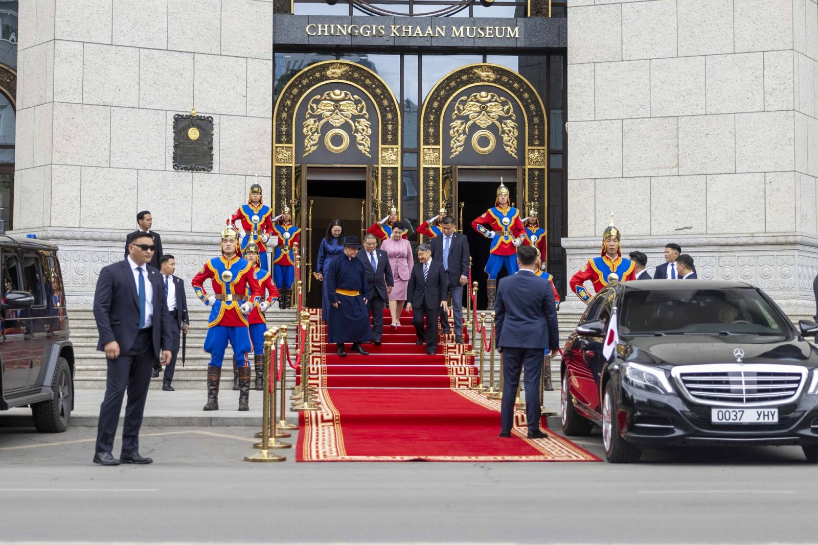 Монгол Улсын Ерөнхийлөгч Ухнаагийн Хүрэлсүхийн урилгаар төрийн айлчлал хийж буй Япон Улсын Цог Жавхлант Эзэн Хаан Нарүхито 2025 оны 07 дугаар сарын 07-ны өдөр Чингис хаан Үндэсний музейд зочиллоо.