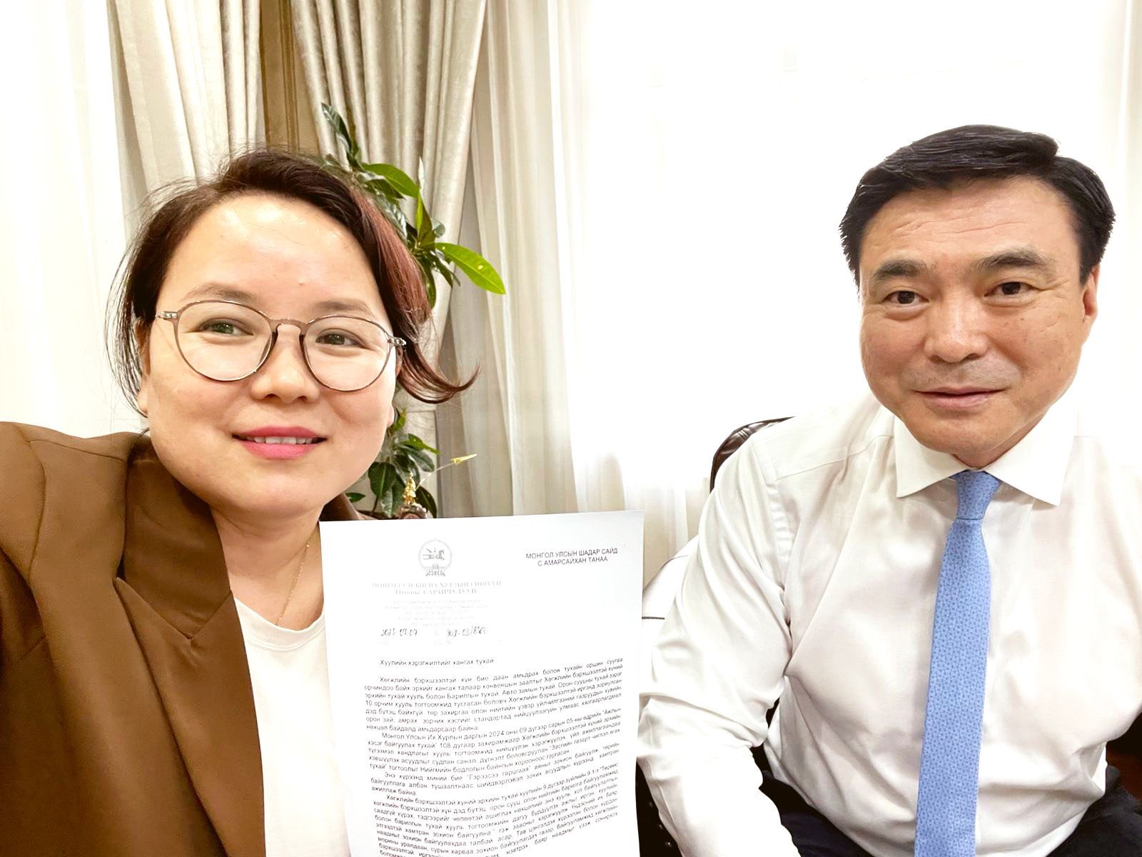 УИХ-ын гишүүн О.Саранчулуун “Гэрээсээ гарцгаая” аяны хүрээнд Улсын Их Баяр Наадам зохион байгуулж буй бүх нэгжүүд хүртээмжтэй орчин үүсгэх тухай хүсэлтийг Монгол Улсын Шадар сайд С.Амарсайханд өглөө.