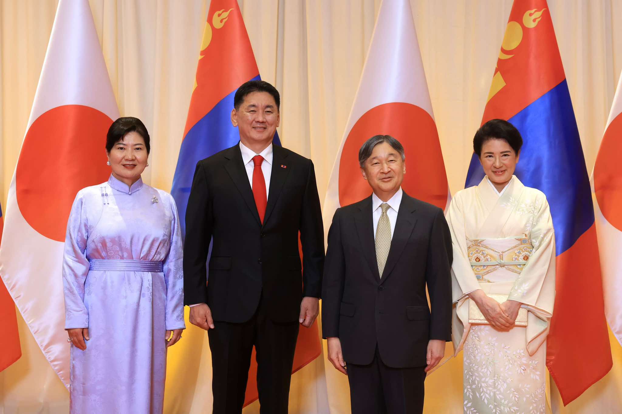 Ерөнхийлөгч У.Хүрэлсүх, гэргий Л.Болорцэцэг нар Япон Улсын Цог Жавхлант Эзэн Хаан Нарүхито, Эрхэм дээд Хатан Масако нарыг хүндэтгэн төрийн зоог барилаа.