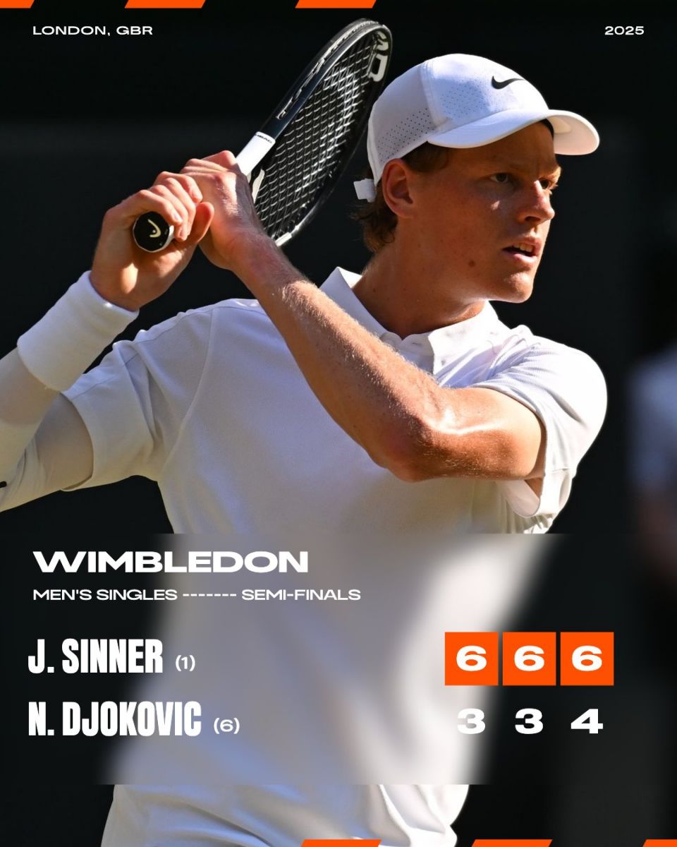 Шөвгийн дөрөвт Тейлор Фрицийг 6:4, 5:7, 6:3, 7:6-аар Алькарас хожсон бол Синнер 6:3, 6:3, 6:4-өөр Новак Жоковичийг буулган авсан.