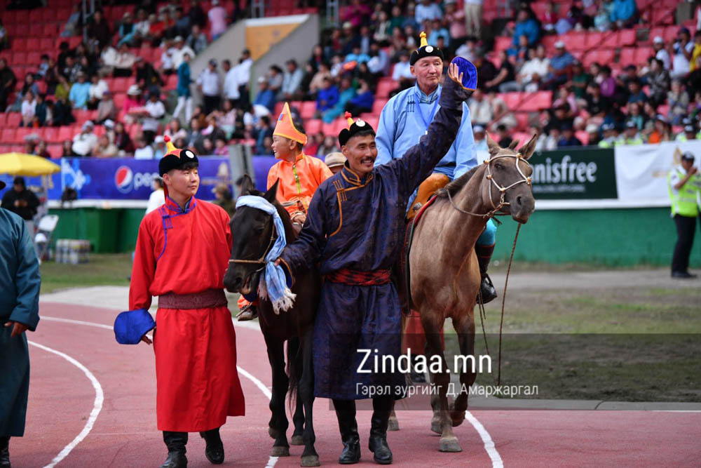 Тэгвэл аман хүзүүнд Дундговь аймгийн Луус сумын харьяат, аймгийн Алдарт уяач Э.Улаанхүүгийн хул халзан даага хурдаллаа.