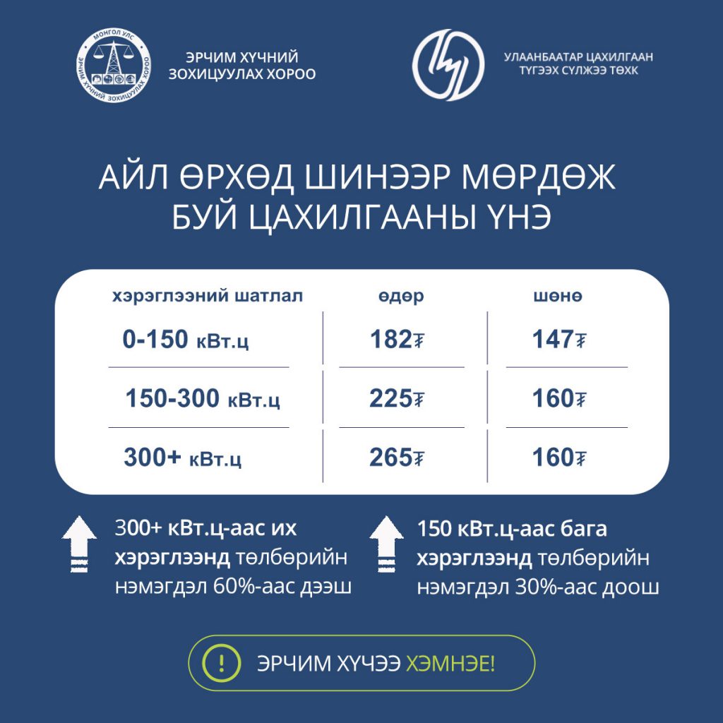 Үүндээ, айл өрхөд мөрдөгдөж буй цахилгааны үнэ хэрхэн гурван шатлалт хуваагдаж байгааг дурдсан.
