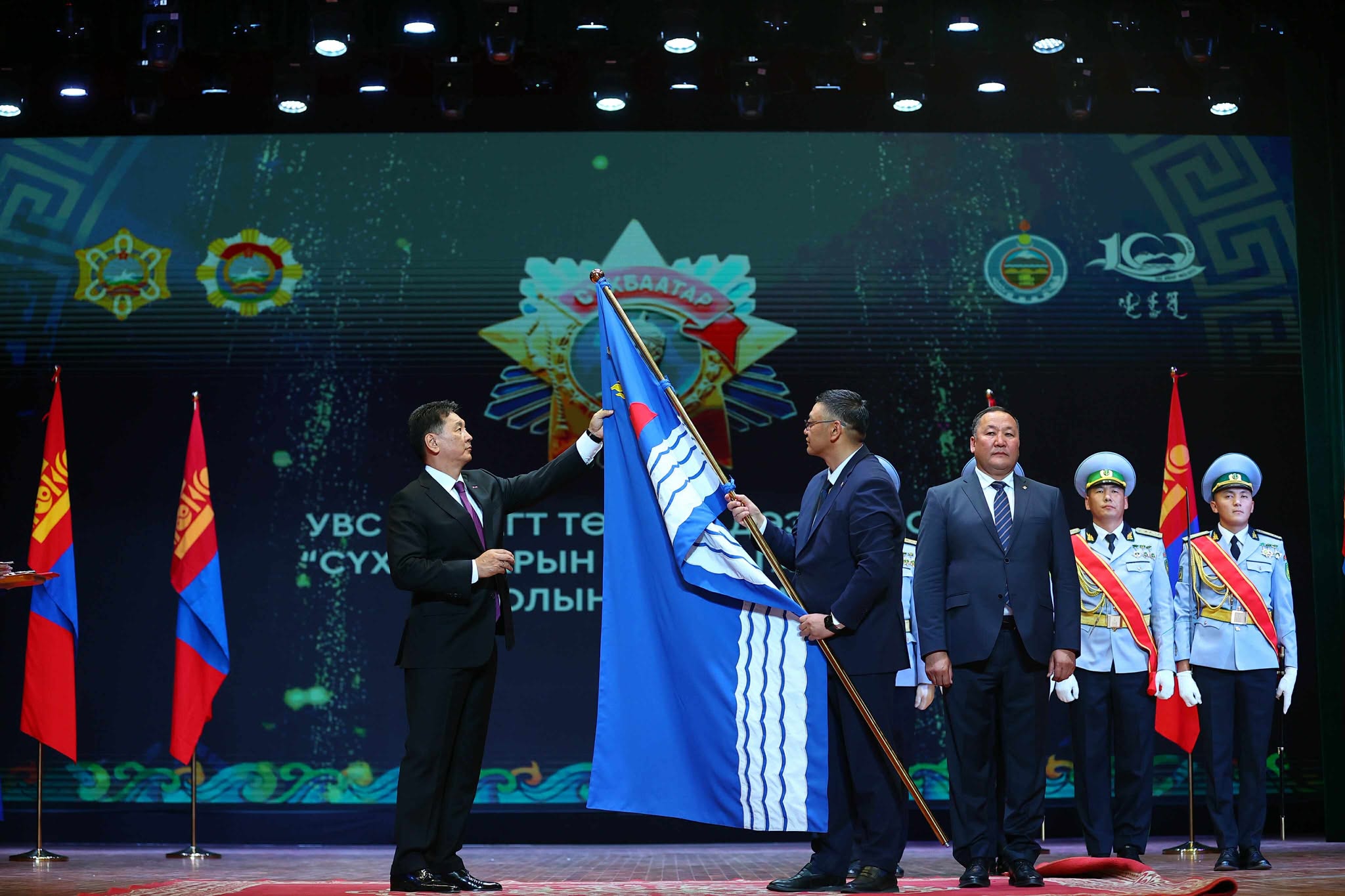 Тэрбээр, орон нутаг болон улс эх орныхоо хөгжил дэвшилд оруулсан үнэтэй хувь нэмэр, иргэдийн хөдөлмөр зүтгэл, бүтээлч үйлс, гавьяаг үнэлэн Увс аймгийг Сүхбаатарын одонгоор шагналаа.