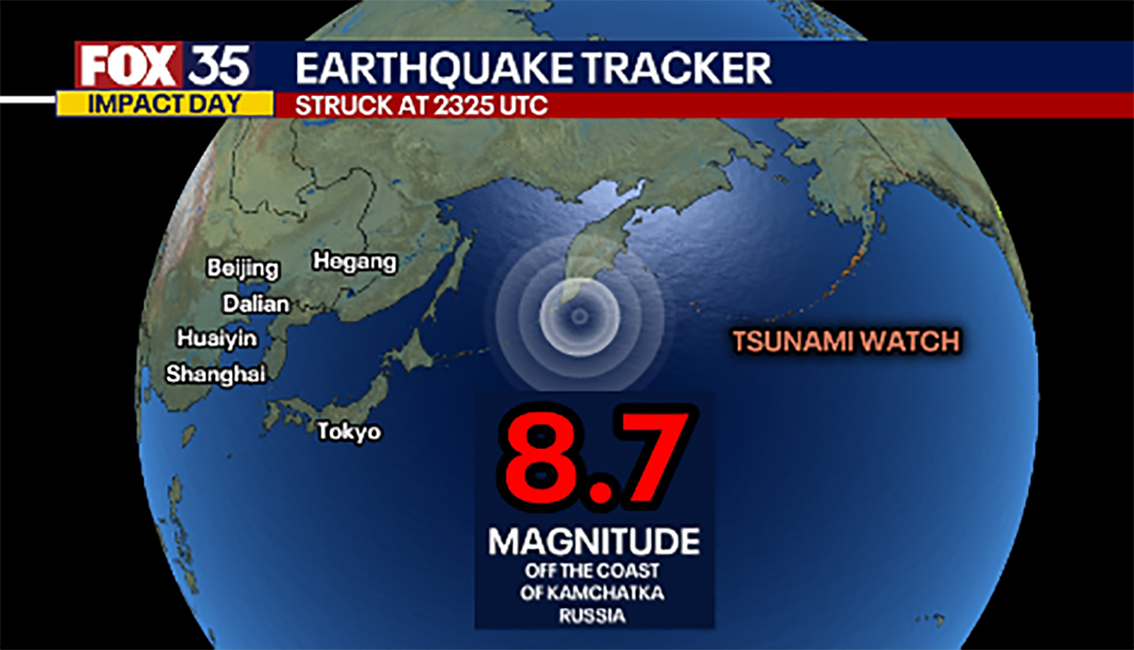 АНУ-ын Геологи, цаг уурын албаны мэдээллээр бол ОХУ-ын Камчаткын эрэг орчимд дор хаяж зургаан удаа газар хөдлөлт ойрхон болжээ. 6.9, 6.3, 5.4, 5.7, 5.6 магнитудын хүчтэй газар хөдлөлтөөс гадна хамгийн их аюул дагуулах эрсдэлтэй нь 8.7 магнитудын газар хөдлөлт тооцогдож байна.