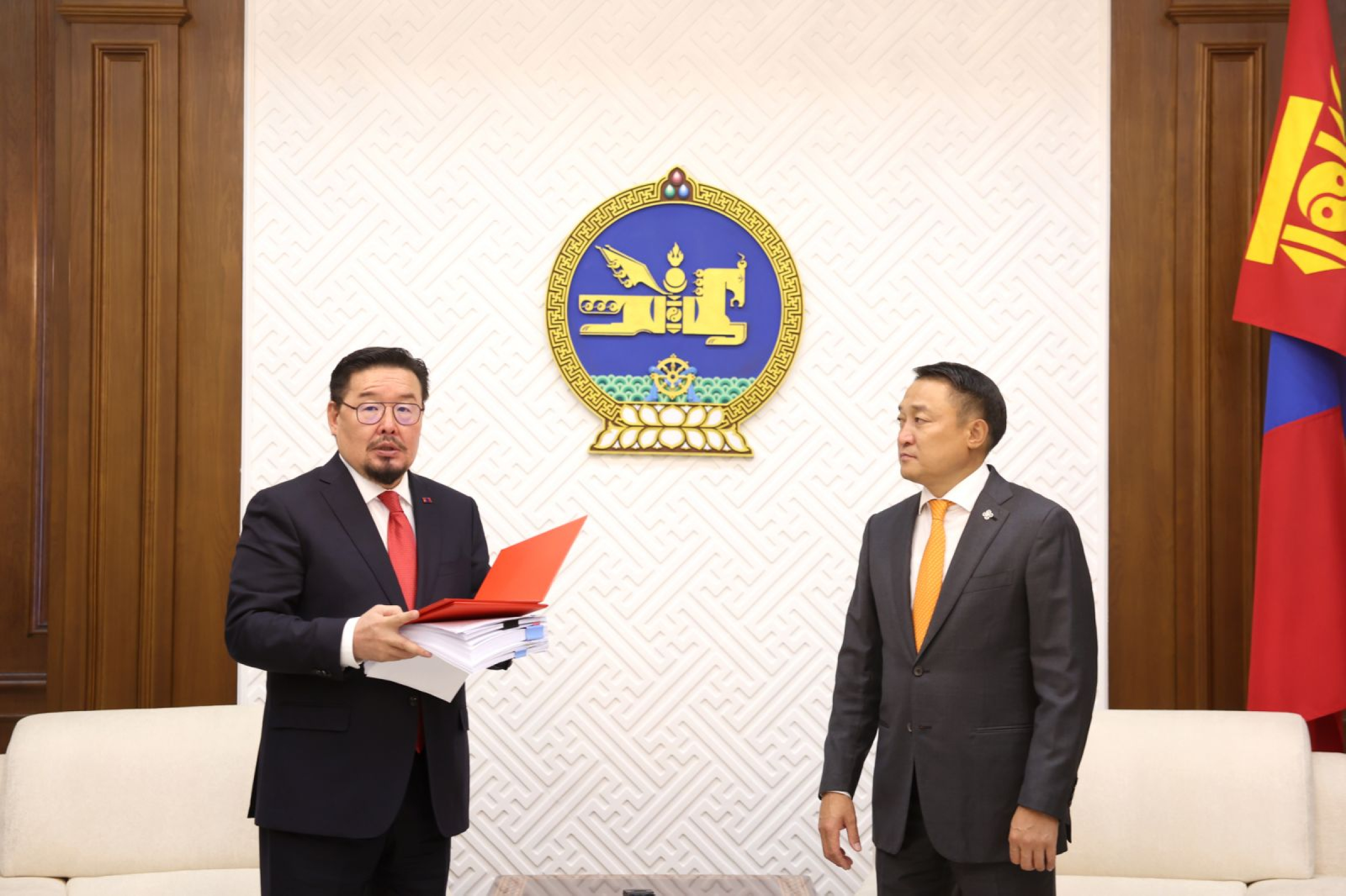 Ерөнхий сайд Г.Занданшатар Монгол Улсын 2026 оны төсвийн тухай хуулийн төслийг холбогдох хууль, тогтоомжийн төслийн хамт Улсын Их Хурлын дарга Д.Амарбаясгаланд өргөн мэдүүллээ. Монгол Улсын 2026 оны нэгдсэн төсвийн тэнцвэржүүлсэн орлогыг 31.6 их наяд төгрөг, нэгдсэн төсвийн нийт зарлага 32 их наяд 980 тэрбум төгрөг, төсвийн тэнцэл ДНБ-ий 1.3 хувийн алдагдалтай байхаар төлөвлөлөө.