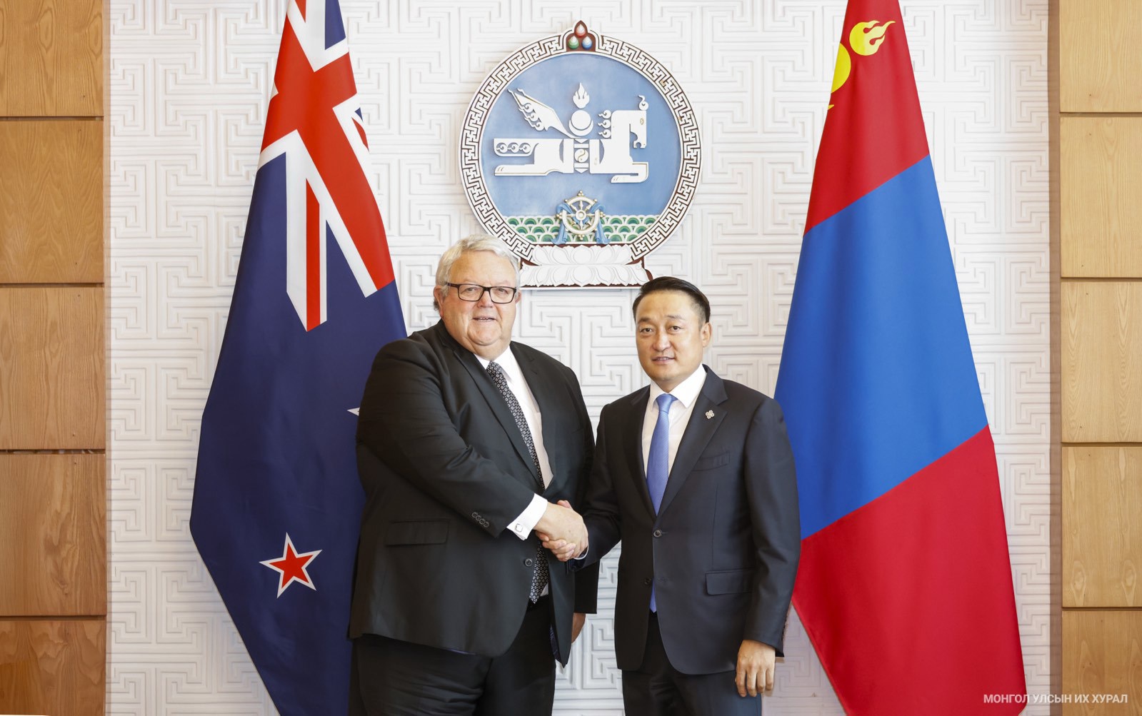 Монгол Улсын Их Хурлын дарга Д.Амарбаясгалан Монгол Улсад албан ёсны айлчлал хийж байгаа Шинэ Зеланд Улсын Парламентын Төлөөлөгчдийн танхимын дарга Жерард Браунли-тай өнөөдөр /2025.09.02/ Төрийн ордонд албан ёсны хэлэлцээ хийлээ.