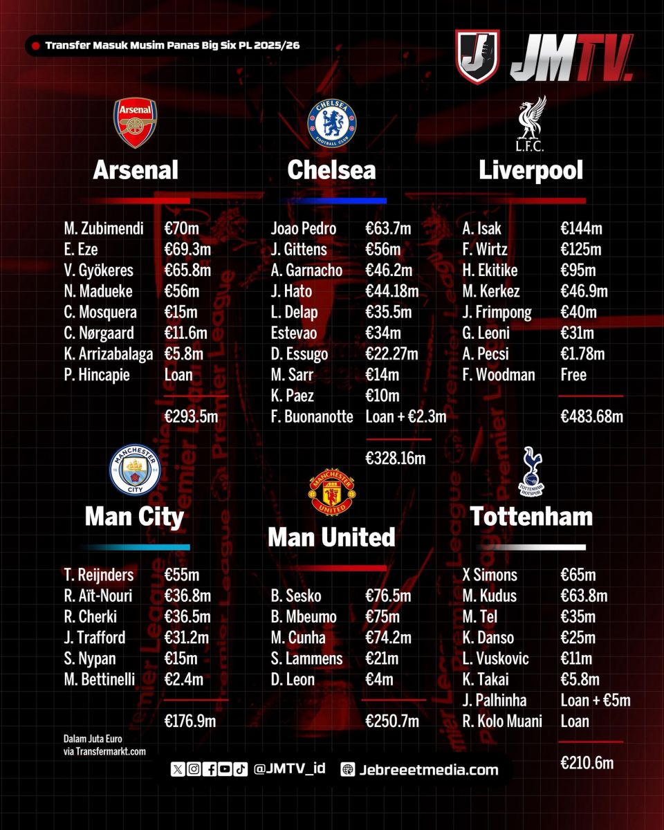 Европын дийлэнх лигүүдийн зуны наймааны цонх есдүгээр сарын 1-ний орой хаагдлаа. Энэ удаагийн наймааны цонхоор хамгийн их мөнгө зарцуулж, шинэ тоглогчид авсан клубээр Английн “Ливерпүүл” тодров.
