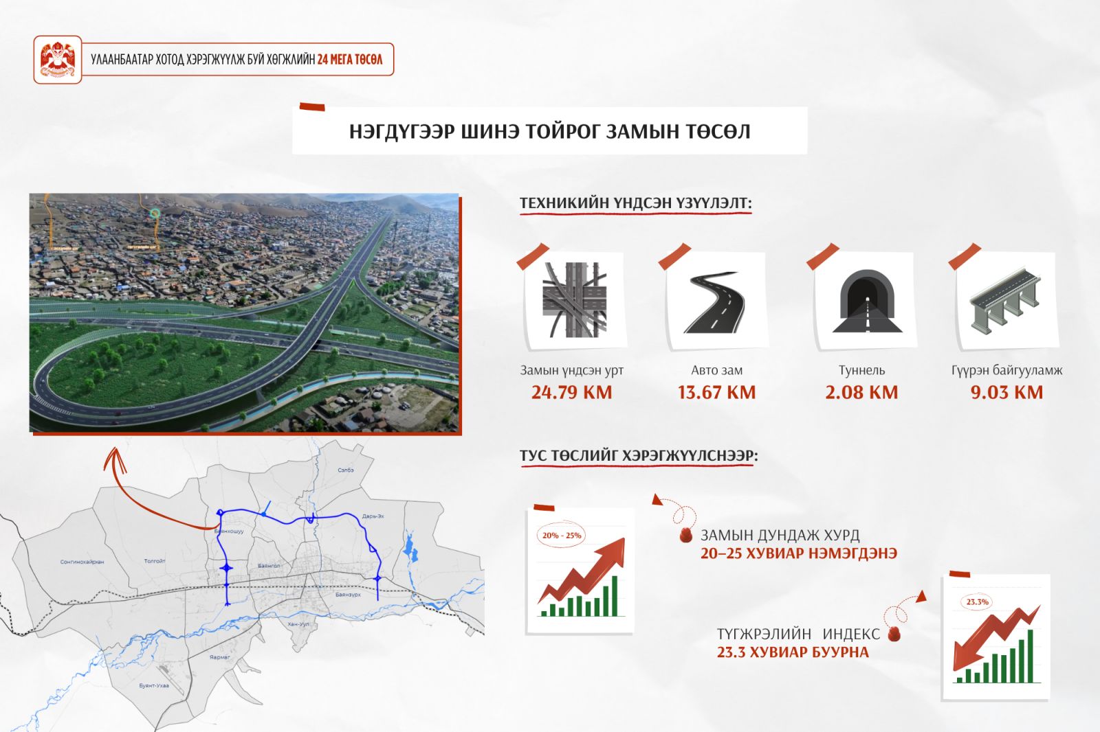 Улаанбаатар хотын агаарын бохирдол, түгжрэлийг бууруулах, иргэдийн ая тухтай амьдрах орчныг бүрдүүлэх зорилгоор 24 мега төслийг хэрэгжүүлж буй. Энэхүү төслийн нэг нь болох “Нэгдүгээр тойрог зам” төслийн гүйцэтгэгчийг шалгаруулах нээлттэй тендерийг өнөөдөр зарлалаа.