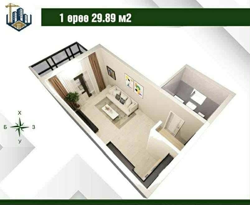1 өрөө~29.89 м.кв