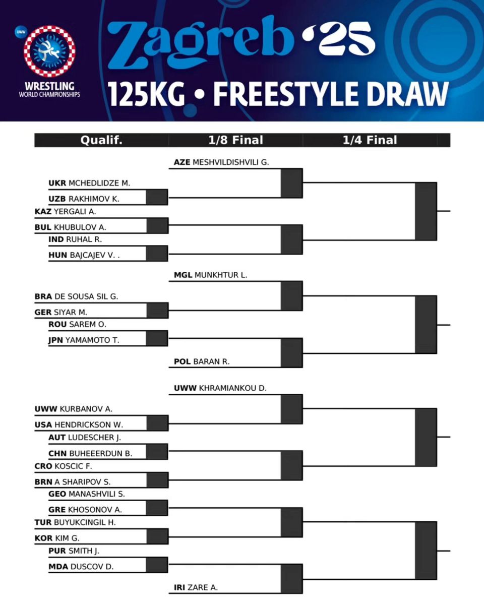 125 кг-ын жинд М.Лхагвагэрэл эхний тойргийг өнжөөд, хоёрдугаар тойрогт Бразил, Германы бөхийн хэн ялсантай нь барилдахаар сугалаа гарчээ.