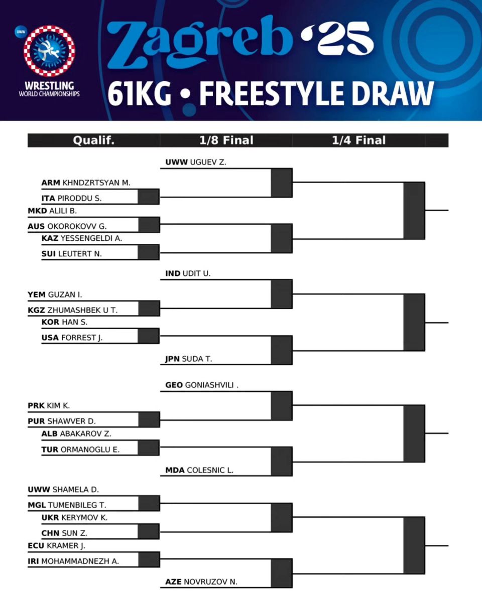 61 кг-ын жинд Т.Түвшинтулгатай Белорусийн 25 настай Дмитрий Шамела сугалаа таарсан байна.  Энэ жилийн Улаанбаатарын Олон улсын тэмцээнд Т.Түвшинтулга түрүүлсэн. Тэгвэл тус тэмцээнд Дмитрий Шамела ирж барилдаад, эхний тойрогтоо Анзор Мажидовтой 7:7-оор тэнцээд, ялагдаж хасагдсан тамирчин. Дараагийн тойрогт Анзор Мажидовыг Т.Түвшинтулга ялсан.