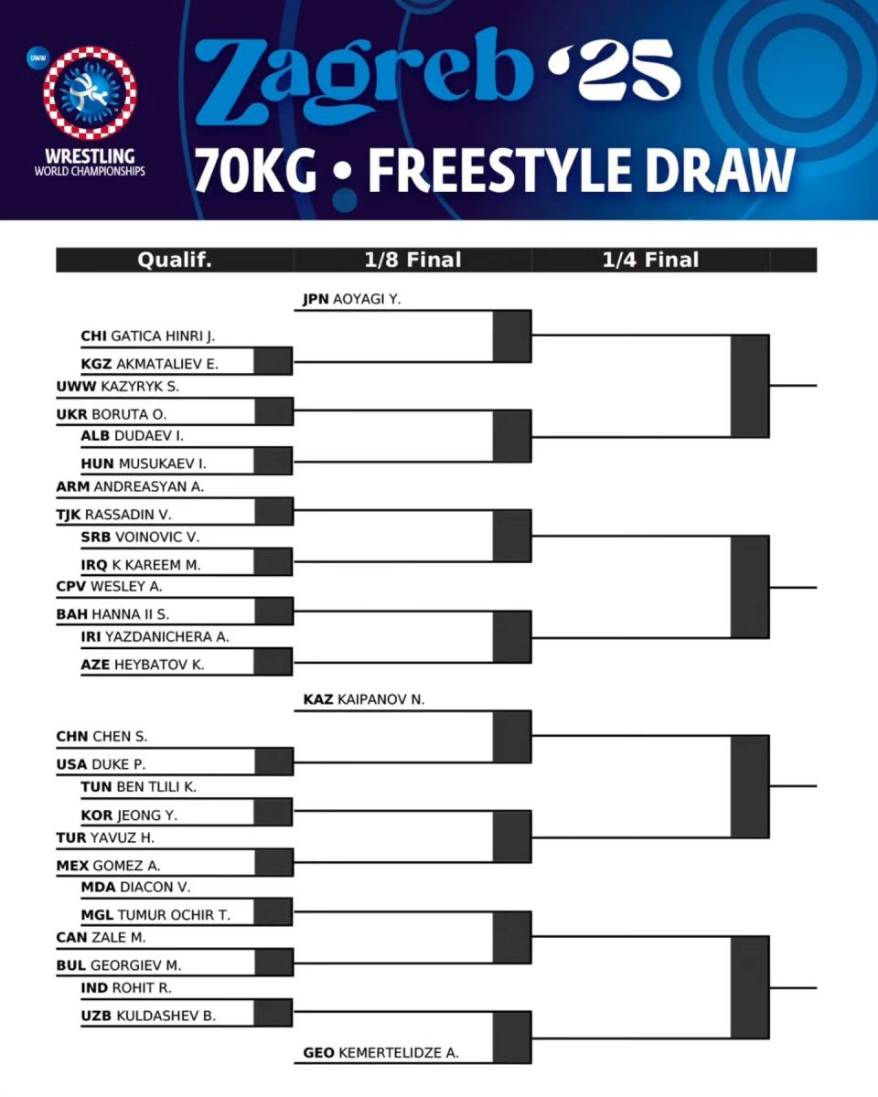 Эрэгтэйчүүдийн барилдаанаар тэмцээн эхлэх юм. Өчигдөр сугалаа гарлаа. Эхний өдөр 61 кг, 70 кг, 86 кг, 125 кг-ын жинд Монголын дөрвөн хүчтэн барилдах болно.
