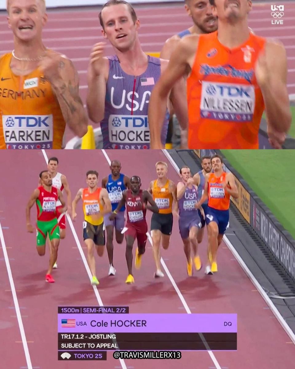 Хөнгөн атлетикийн Дэлхийн Аварга Шалгаруулах Тэмцээний эрэгтэйчүүдийн 1500 метрийн зайн гүйлтийн явцад АНУ-ын гүйгч, Олимпын аварга Коул Хокерийг өрсөлдөгчөө “түлхсэн” үйлдлийнх нь улмаас тэмцээнээс хаслаа.