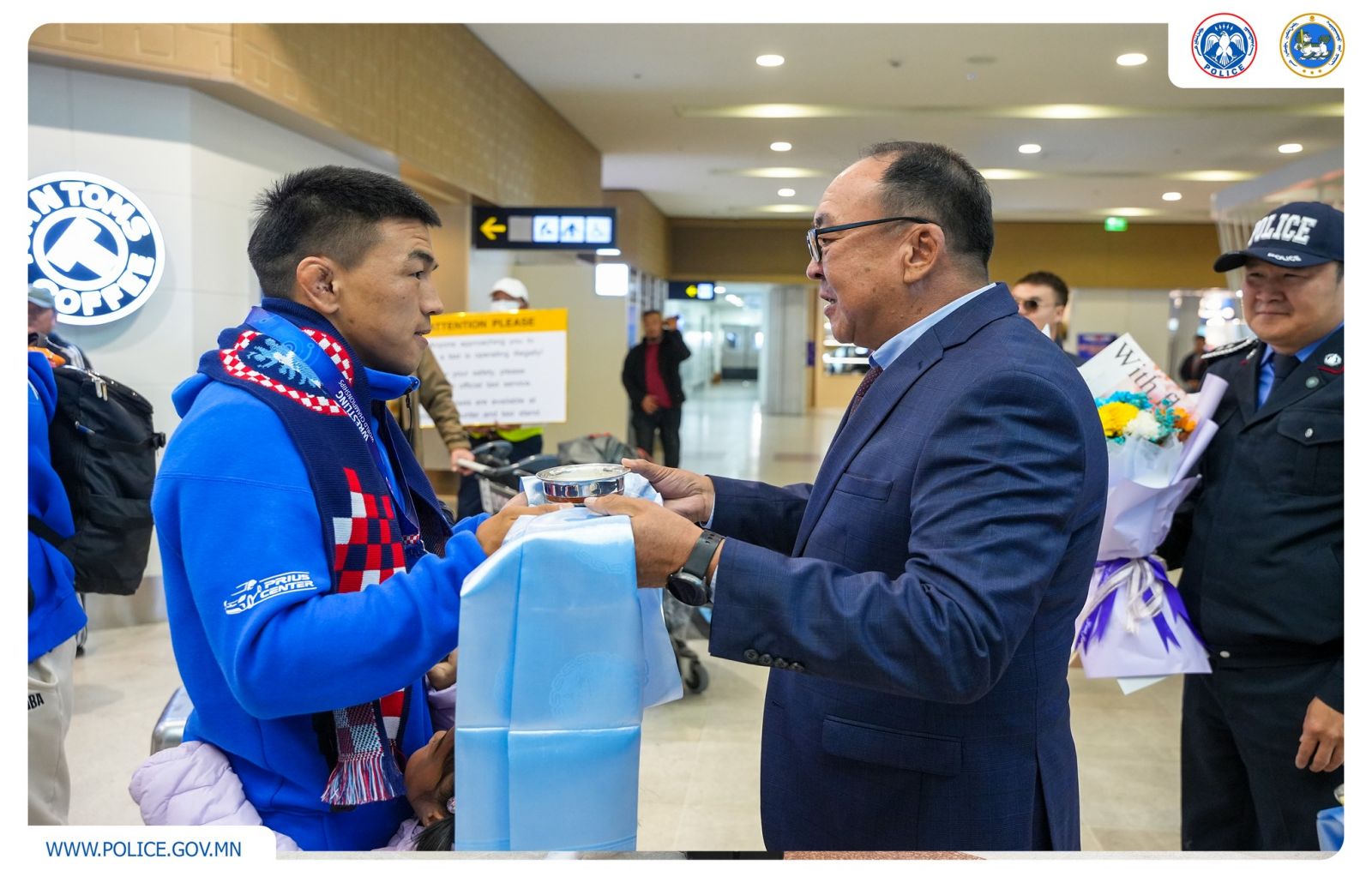 Хорватын нийслэл Загреб хотноо болж буй Чөлөөт бөхийн насанд хүрэгчдийн дэлхийн аварга шалгаруулах тэмцээний эрэгтэйчүүдийн 70 кг-ын жинд зодоглосон “Осло-2021” ДАШТ-ий хүрэл медальт, “Ханжоу-2022” Азийн наадмын аварга, Ази тивийн хошой мөнгөн медальт Цагдаагийн ерөнхий газрын Цагдаа, дотоодын цэргийн сургалтын нэгдсэн төвийн Хүч албаны бэлтгэлжилтийн хэлтсийн дасгалжуулагч, цагдаагийн дэслэгч Т.Тулга мөнгөн медалийн болзол ханган, өнөөдөр (2025.09.18) эх орондоо ирлээ.