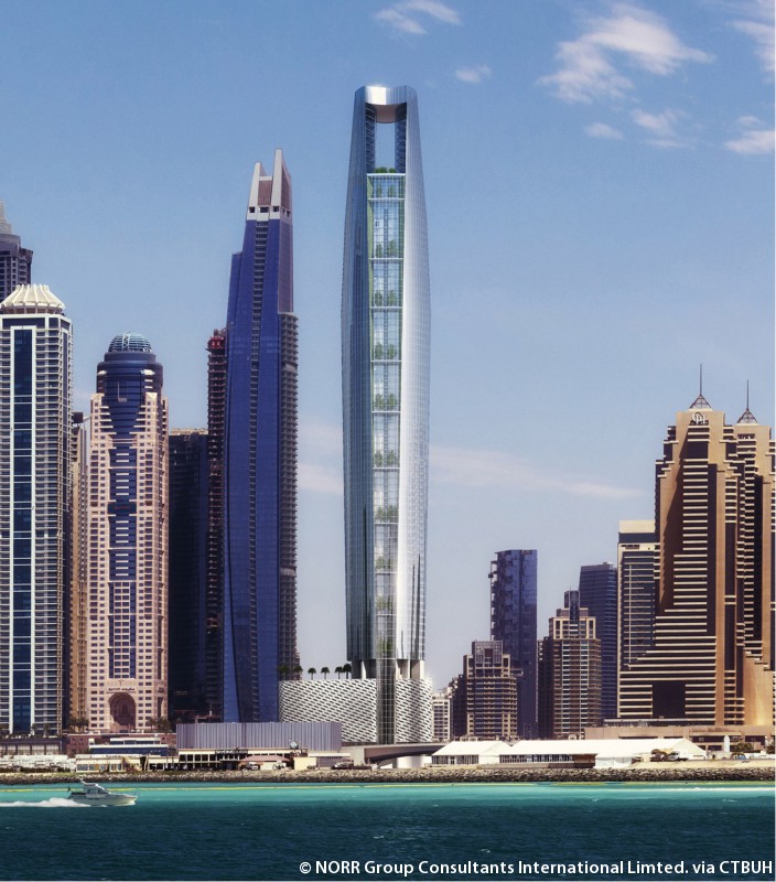 Нийт 82 давхартай 377 м өндөр Ciel Dubai Marina зочид буудал Dubai Marina дүүрэгт сүндэрлэж байна. Одоогоор дэлхийн хамгийн өндөр зочид буудал нь мөн л Дубайд байдаг 356 м өндөр Gevora зочид буудал юм.