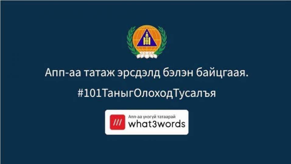 Мэдээлэл, дуудлага өгч байгаа иргэн өөрийн байгаа газрынхаа хаягаа мэдэхгүй, координат өгөх боломжгүй тохиолдолд өөрийн ухаалаг гар утсан дээрээ интернэттэй болон интернэтгүй үед “what3word” программыг ашиглан 3 үгт хаягаа ирүүлнэ. Ингэснээр дуудлагын байршлыг нарийвчлалтайгаар тогтоож, цаг алдалгүй шуурхай мэдээллийг хүлээн авах боломжийг бүрдүүлдэг юм.