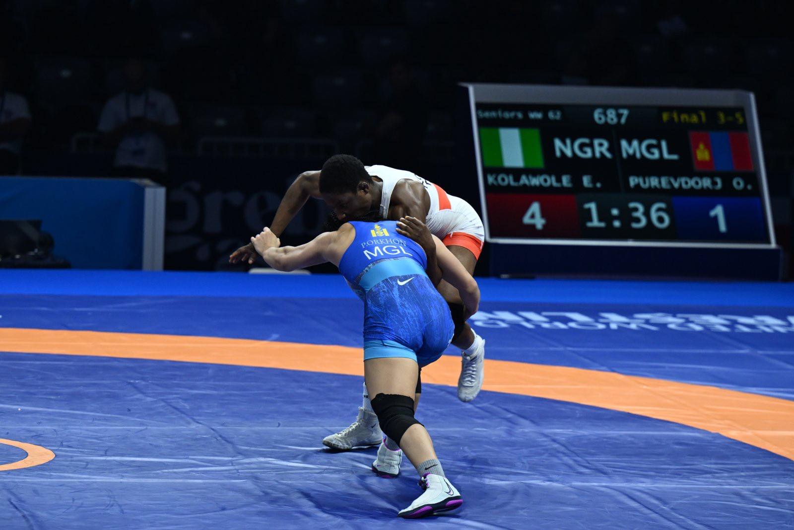 2017 оны ДАШТ-д түрүүлсэнээс хойш багагүй зүйлийг үзэж туулж, давж гарсан Монголын орчин цагийн төдийгүй түүхэн дэх шилдэг бөхчүүдийн нэг хүрэл медалийн төлөө Нигерийн Эстер Колаволэг 6:5-аар хүнд барилдаанд яллаа. П.Орхон энэ ДАШТ-д Нигериэс гаралтай хоёр бөхтэй барилдлаа. Нэг нь шөвгийн наймд учраа таарсан АНУ-ын Диана Нвачукву байсан. Түүнийг 5:2-оор ялсан юм.