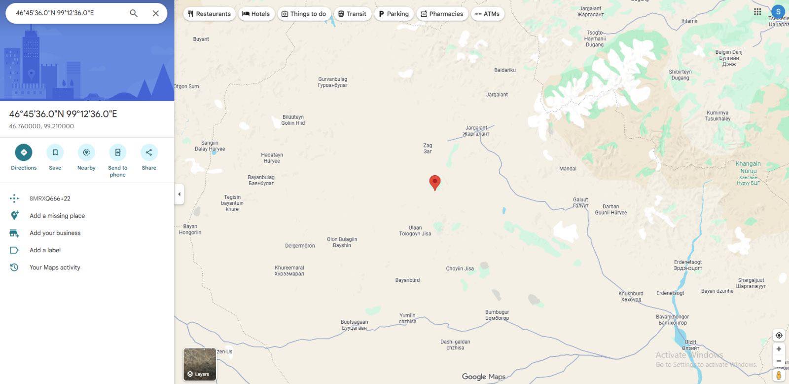 Баянхонгор аймгийн Заг сумын төвөөс урд зүгт 19 км зайд өнөөдөр /2025.09.26/ 07:58:57 цагт 3.7 магнитудын хүчтэй газар хөдлөлт боллоо.