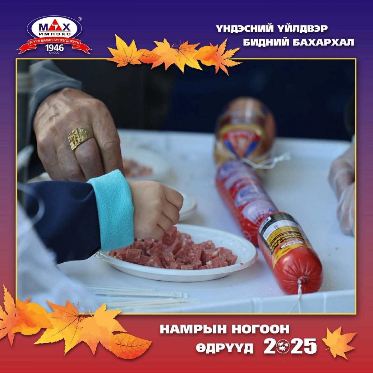 1. Үндэсний ууган үйлдвэрүүд нэг дор “Мах Импэкс” ХК, “Талх Чихэр” ХК, “Өв соёл” ХХК, “Delice Pastry”, “Томбат” зэрэг үйлдвэрлэгчид “Үндэсний үйлдвэр – Бидний бахархал” уриан дор нэгдэж, шинэ бүтээгдэхүүн, инновацийн шийдлээ танилцуулна.