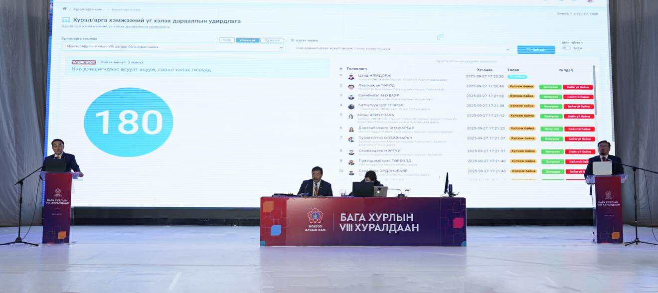 Монгол Ардын намын Бага хурлын VIII хуралдаан намын даргад нэр дэвшигчдийн мэтгэлцээнээр үргэлжилж байна.