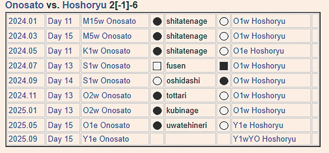 Тэд өмнө нь хоорондоо 8 удаа барилдсан. Хоошёорюү 6 давсан бол Ооносато 2 даваатай гэж тэмдэглүүлдэг. Гэхдээ Ооносатогийн нэг даваа нь барилдалгүй авсан даваа юм. Тэгэхээр Ооносато ердөө нэг л удаа давсан нь яг жилийн өмнө 2024 оны Аки башёд юм. Сүүлийн гурван барилдаанд гурвууланд нь Хоошёорюү давжээ.