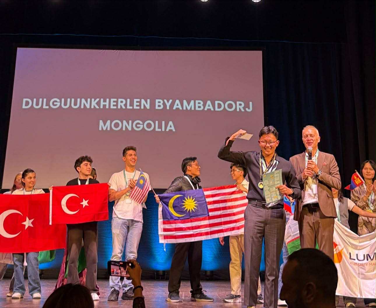 Италид болсон "Hippo-2025" олимпиадад нийт 73 орны 93,224 сурагч оролцсоноос "WORLD FINAL" шатанд 317 оролцогч шалгарч, тэдний дунд Монгол Улсаа төлөөлөн 19 сурагч оролцсоноос Б.Дөлгөөнхэрлэн "Hippo-4" буюу ахлах ангийн төрөлд, ийн алтан медаль хүртэж, Монголынхоо нэрийг дэлхийн тавцанд дуурсгалаа.