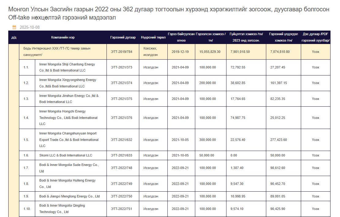 Засгийн газрын шийдвэрийн дагуу “Эрдэнэс Тавантолгой” ХК-ийн сайтад нүүрсний гэрээнүүдийг нийтэд ил болгож, байршуулж эхэллээ.