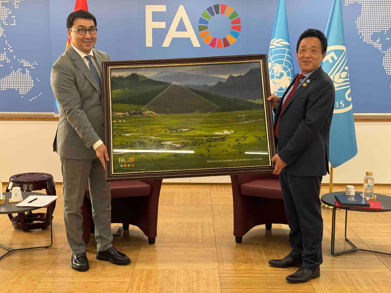 ХХААХҮЯ-ны ТНБД Т.Жамбалцэрэн НҮБ-ын ХХААБ-ын захирал Цюй Дүньюйтэй уулзав