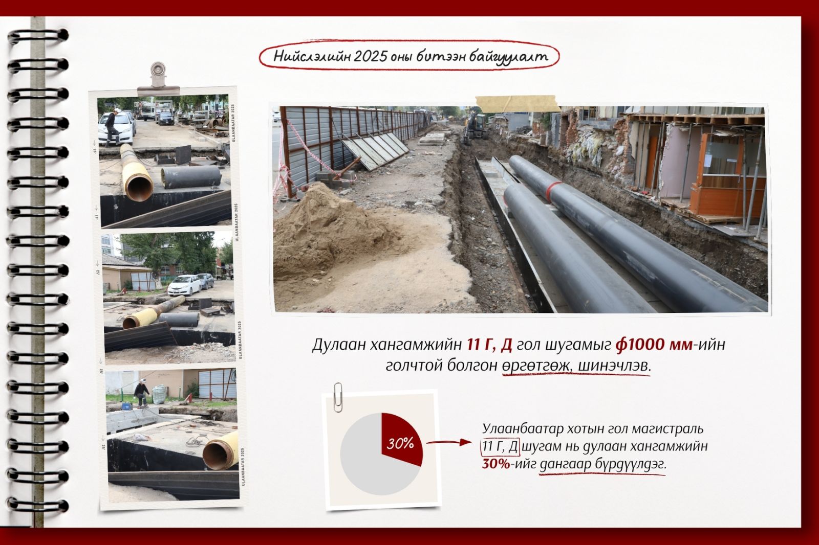 Улаанбаатар хотын гол магистраль 11 Г, Д шугамыг 1984 онд ашиглалтад оруулж байсан бөгөөд дулаан хангамжийн 30 хувийг дангаар бүрдүүлдэг. Тус шугамыг 2024 оноос эхлэн хэсэгчлэн өргөтгөж байгаа юм. Тодруулбал, 2024 онд Саппорогийн уулзвараас 25 дугаар эмийн сан хүртэлх 1.6 км хос шугамыг ф1000 мм-ийн голчтой болгон шинэчилсэн. Харин энэ онд 25 дугаар эмийн сангаас төмөр замын "BSB" цахилгаан барааны дэлгүүр хүртэл 750 метрийг шинэчлэв.