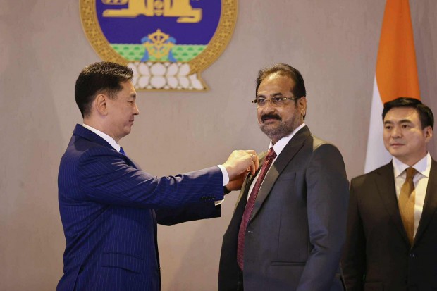 Хоёр орны хооронд дипломат харилцаа тогтоосны 70 жилийн ойг тохиолдуулан харилцаа, хамтын ажиллагааг өргөжүүлэн хөгжүүлэхэд үнэтэй хувь нэмэр оруулсан энэтхэг иргэдийг төрийн одон, медалиар шагналаа.