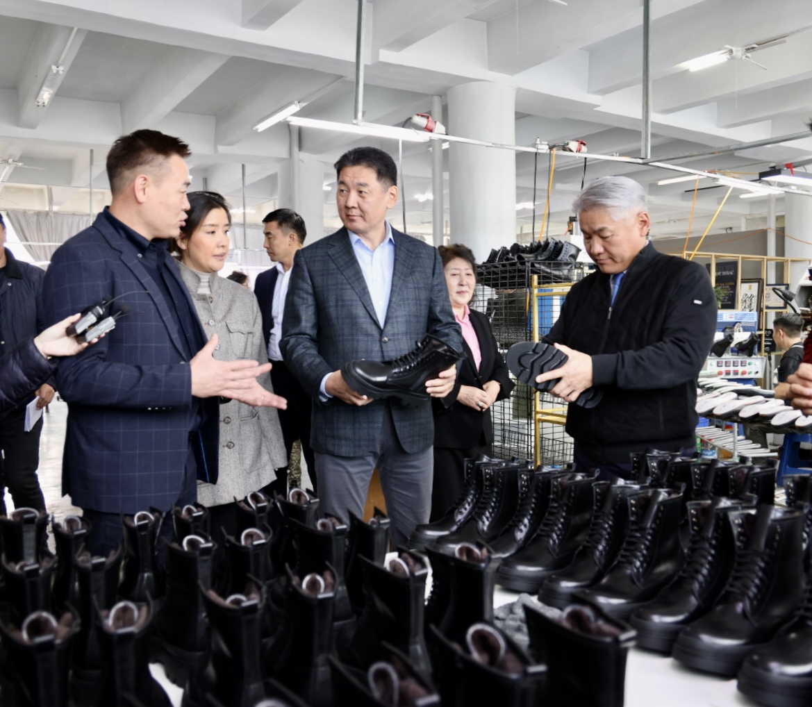Монгол Улсын Ерөнхийлөгч У.Хүрэлсүх, Хүнс, хөдөө аж ахуй, хөнгөн үйлдвэрийн сайд Ж.Энхбаяр нар үндэсний үйлдвэрлэгч “Бренд гутал” ХХК-ийн үйлдвэрт 2025.11.14-ний өдөр ажиллалаа.