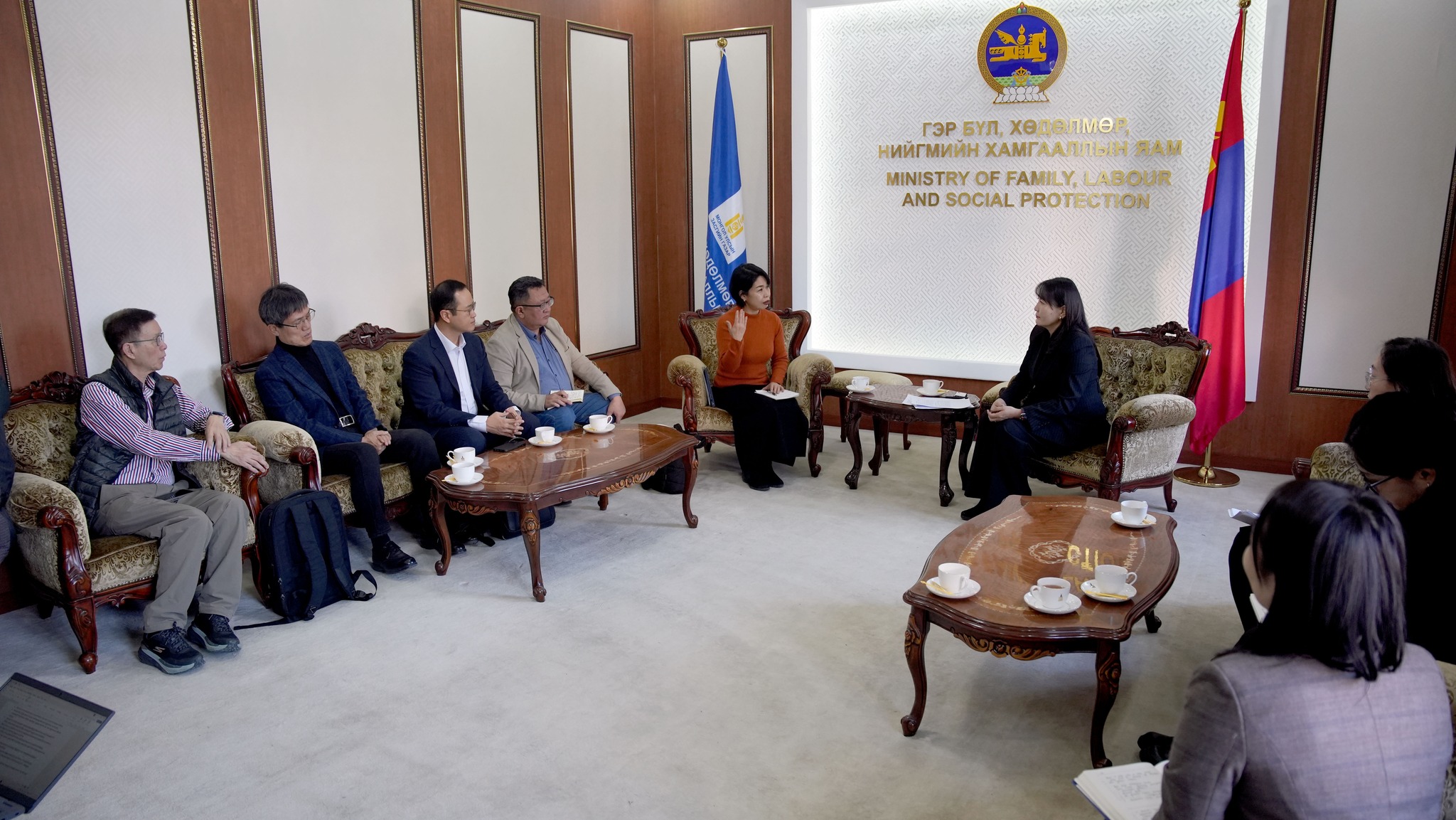 Уулзалтад Азийн хөгжлийн банкны Хүний болон нийгмийн хөгжлийн хэсгийн мэргэжилтэн Жэ Кён Ким, Урт хугацааны тусламжийн бодлого, санхүүжилтийн зөвлөх Сүүнман Квон, Петер Чан бол Гэр бүл, хөдөлмөр, нийгмийн хамгааллын яамны Нийгмийн халамжийн бодлогын газрын дарга Ю.Отгонбилэг нарын албаны хүмүүс оролцлоо.