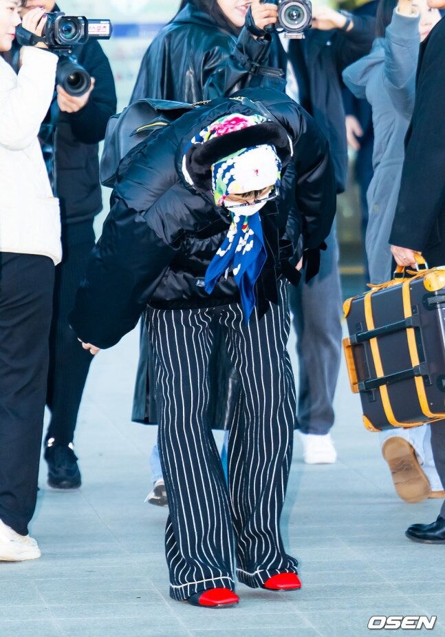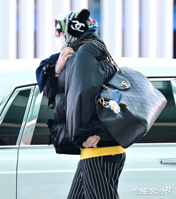 Тэрээр тун удахгүй Нью-Йорк хотноо зохион байгуулагдах 2026 оны загварын чиг хандлагыг тодорхойлох загварын шоунд оролцохоор өнөөдөр Инчон хотын нисэх онгоцны буудалд иржээ. Хээ угалз бүхий эрээн алчуур, Chanel брэндийн үслэг чихэвч болон уутан загварын цүнхээр гоёсон тэрээр ээлжит "эмээ" стилиэрээ шүтэн бишрэгчдээ хоёр хуваагаад амжив.